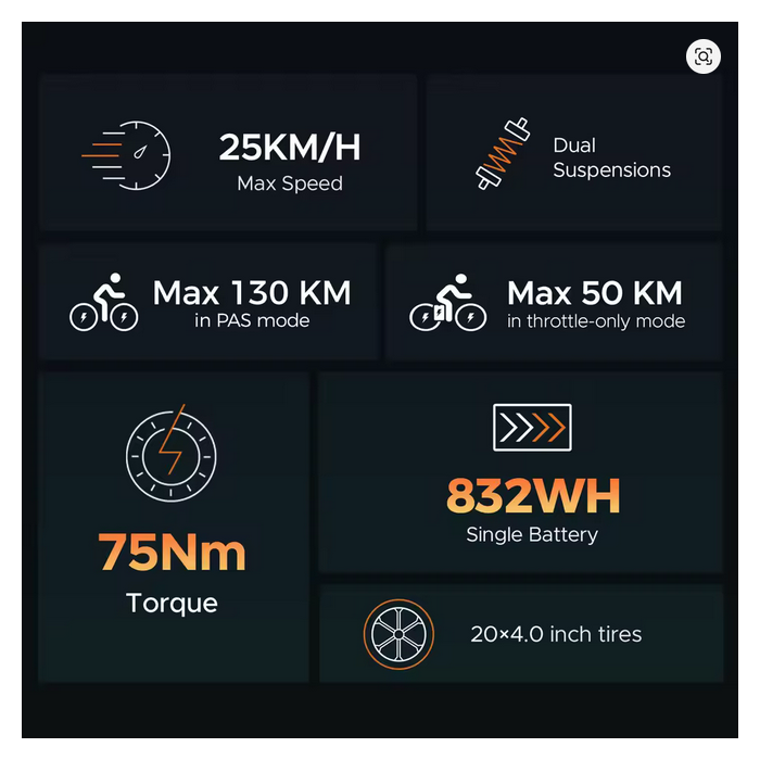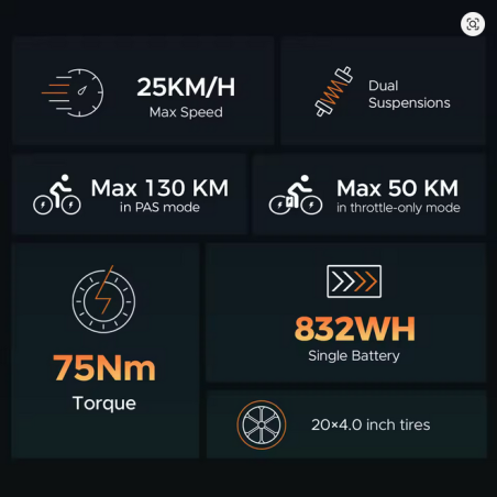 HillMiles MileZoom1 električni bicikl s debelim gumama, motor od 250 W, obrtni moment od 75 Nm, baterija od 832 Wh, gume 20 x 4,0", potpuno ovjes, hidraulične kočnice