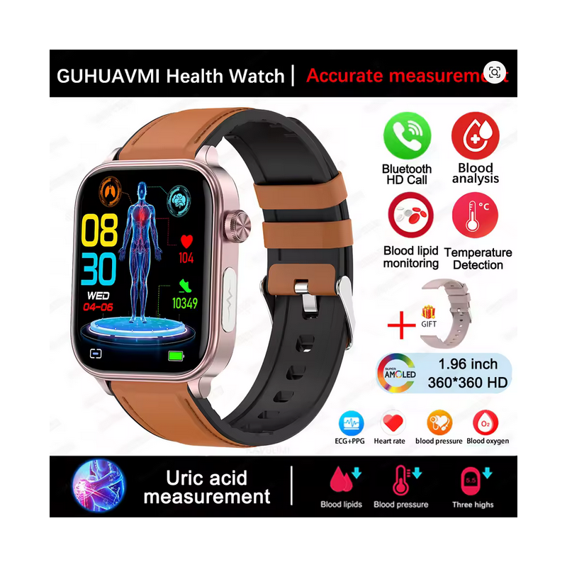 Novo iz 2025. za XIAOM1 EKG+PPG, pametni sat za mjerenje masnoće u krvi, mjerenje mokraćne kiseline, mjerenje zdravlja, za muškarce i žene, mjerenje pulsa, mjerenje krvnog pritiska, Bluetooth poziv.