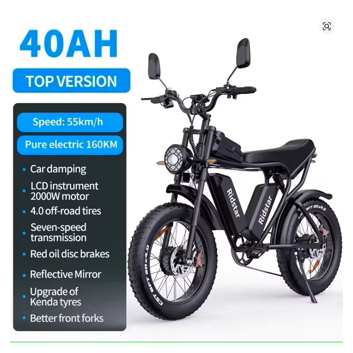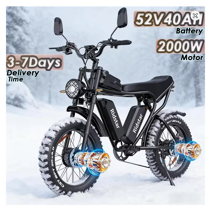 Ridstar Q20 E-Bike mit 2000-W-Doppelmotor, 52-V-40-Ah-Lithium-Akku und 204,0-mm-Fatbike-Reifen
