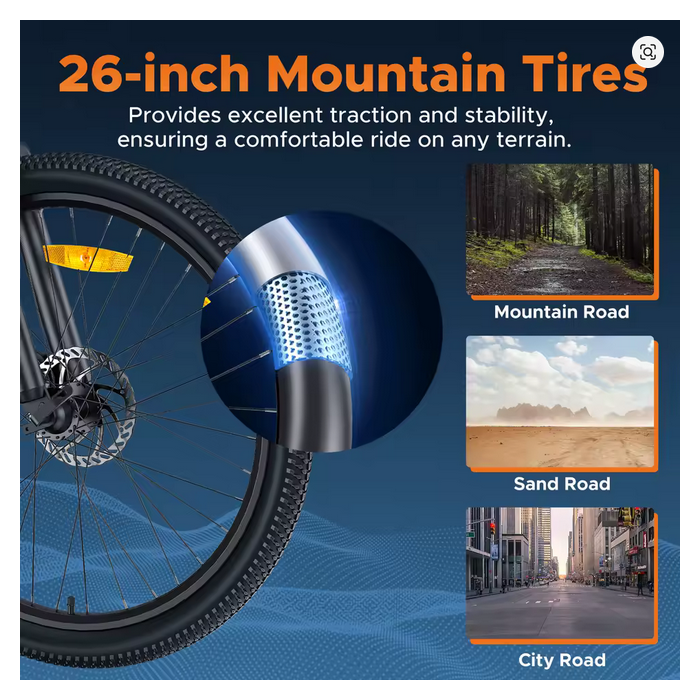 HillMiles MileTrail Elektro-Mountainbike, 250 W, 36 V 13 Ah Akku, 25 km/h, Federgabel, 7 Gänge, hydraulische Scheibenbremsen