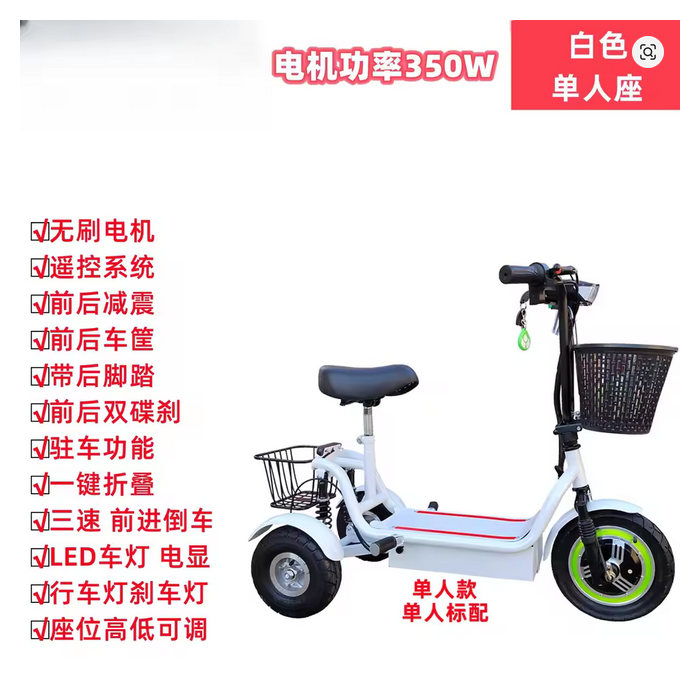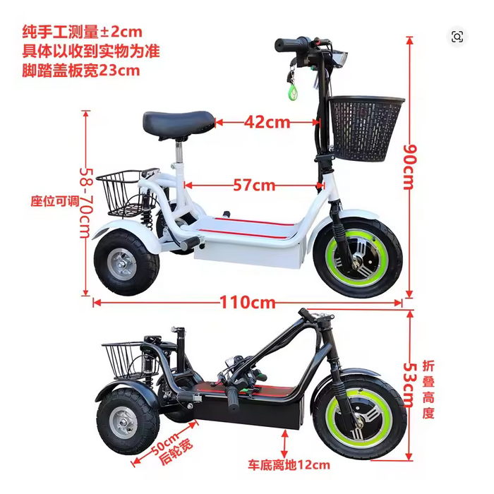 Dieses Elektrodreirad überzeugt nicht nur durch seine Leistung, sondern auch durch seinen Komfort. Das 12-Zoll-Design des tragbaren Scooters sorgt dafür, dass er kompakt genug ist, um einfach zusammengeklappt und verstaut zu werden – ideal für alle, die wenig Platz haben. Das verwendete organische Material garantiert ein komfortables Fahrgefühl und macht jede Fahrt zum Vergnügen. Ob Sie durch belebte Straßen der Stadt navigieren oder die Landschaft erkunden, das elektrische Dreirad für erwachsene Frauen bietet eine sanfte und angenehme Fahrt.