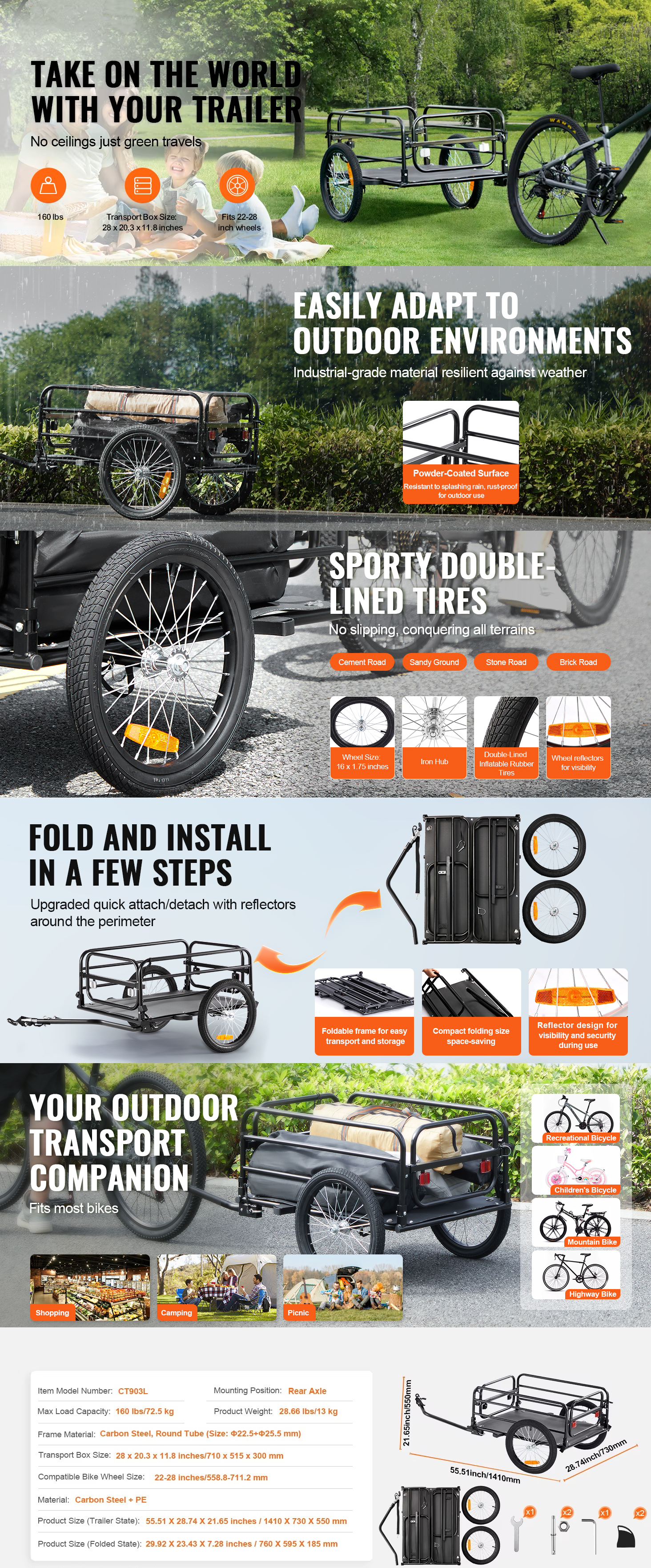 Passend für verschiedene Fahrradmodelle: Unser Fahrradwagen ist mit Fahrrädern von 22 bis 28 Zoll kompatibel und lässt sich problemlos an verschiedene Modelle anbringen, darunter Freizeiträder, Kinderfahrräder, Mountainbikes und Rennräder. Ideal zum Einkaufen, Campen und Picknicken. HINWEIS: Nicht für Haustiere oder Kinder geeignet.