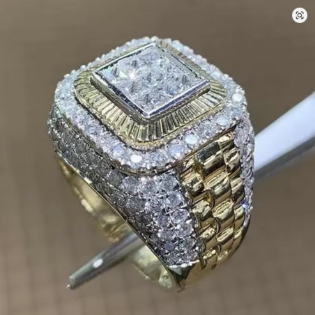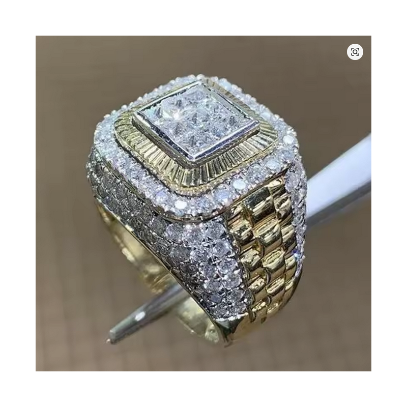 Vintage 925 Sterling Silver Bling Crystal Filled Gold Color Signets Rings for Men