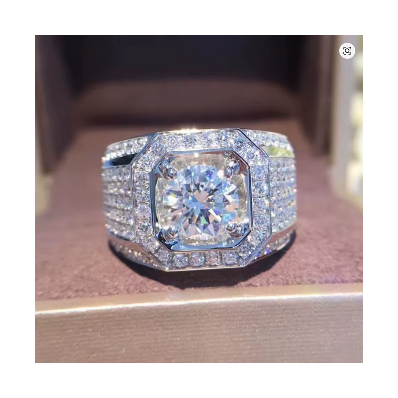 Luxury 925 Sterling Silver Men AAA Crystal Zircon Stone Wedding Ring Brilliant