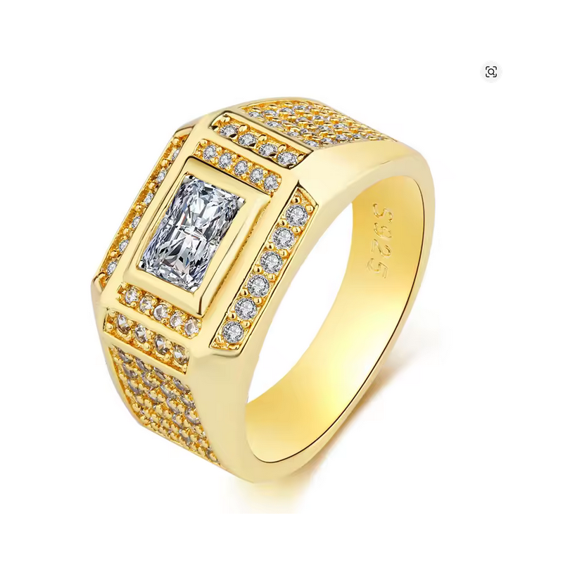 Huitan Luxe Zilveren Ronde Ringen met Kubieke Zirkonia voor Heren Klassieke Trouwring Schitterende Herenaccessoires Sieraden