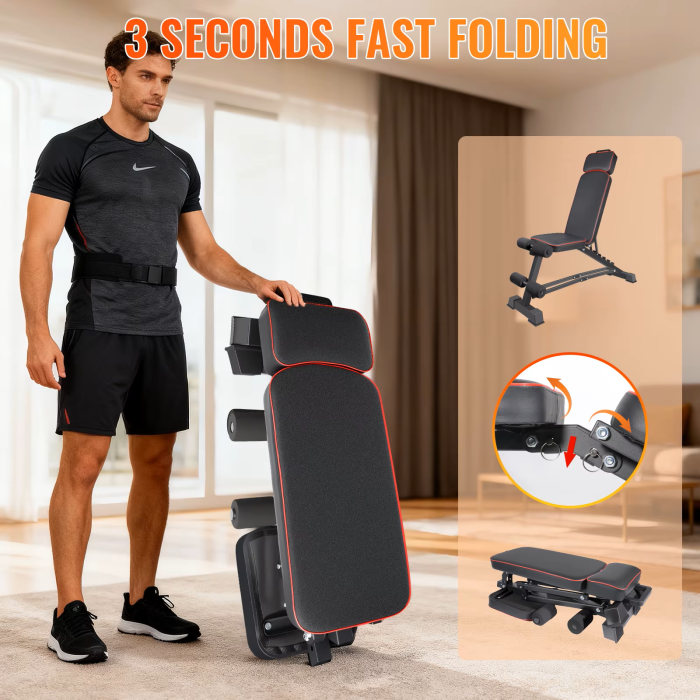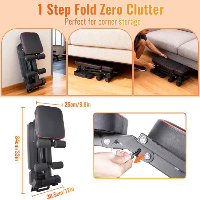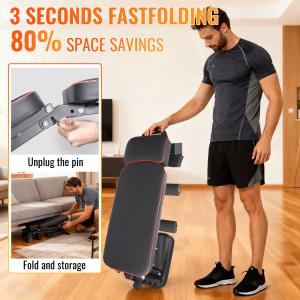 Ook gemakkelijk op te bergen in kleine appartementen: dankzij de handige handgreep kan het apparaat snel met één hand worden ingeklapt. Na het inklappen is het compact en kan het gemakkelijk onder het bed, in een hoek of in een berging worden opgeborgen. Het neemt weinig ruimte in beslag, waardoor thuisfitness flexibeler en gemakkelijker wordt.