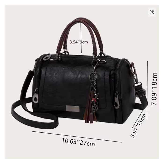 Dames schoudertas met kwastjes, grote capaciteit, modieuze crossbodytas met ritssluiting en afneembare riem, Boston handtas