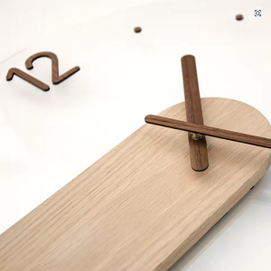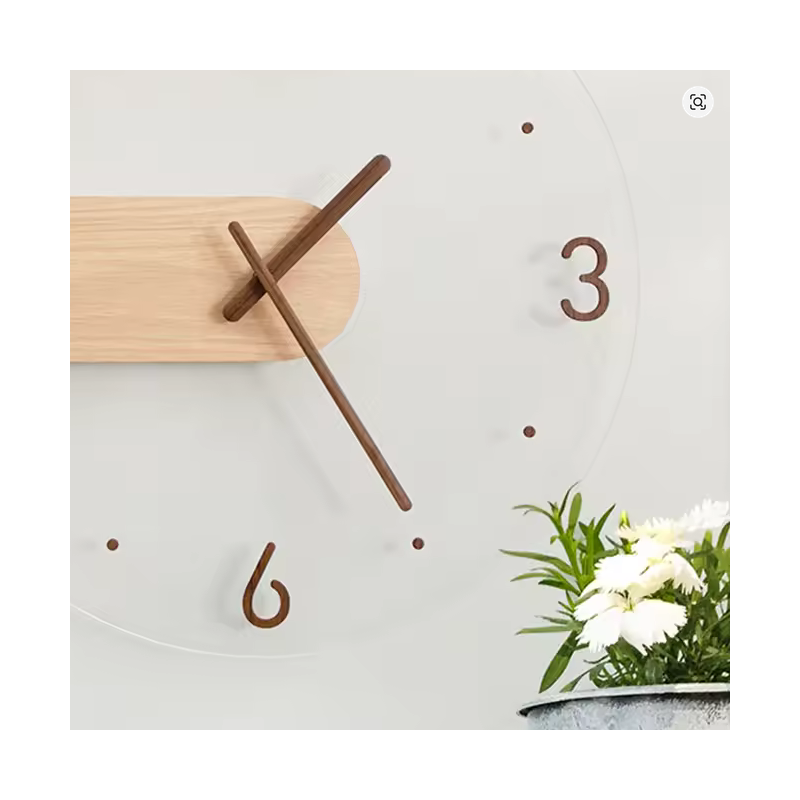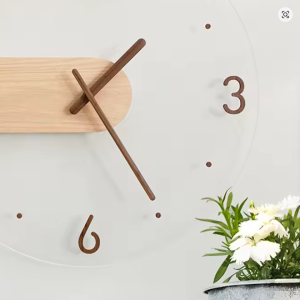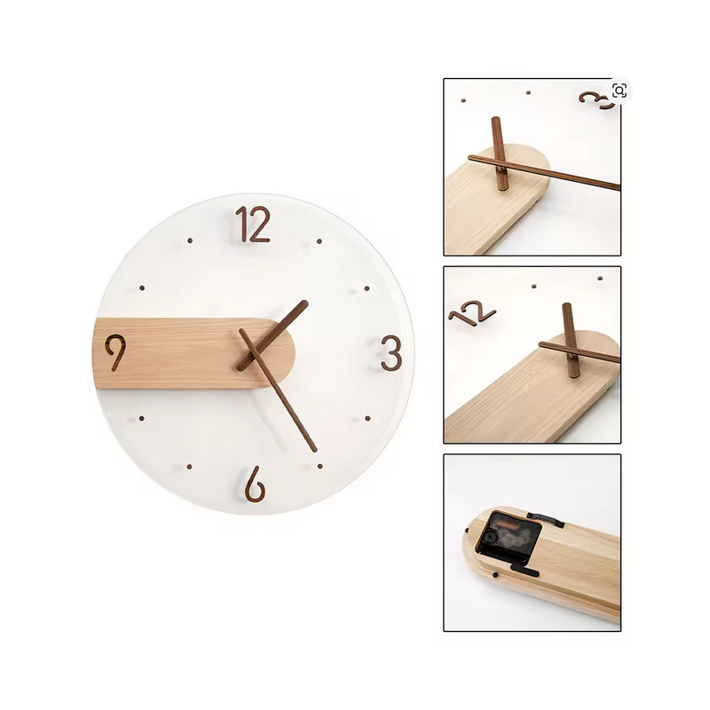 Trendy wandklok voor de woonkamer, gemaakt van massief hout
